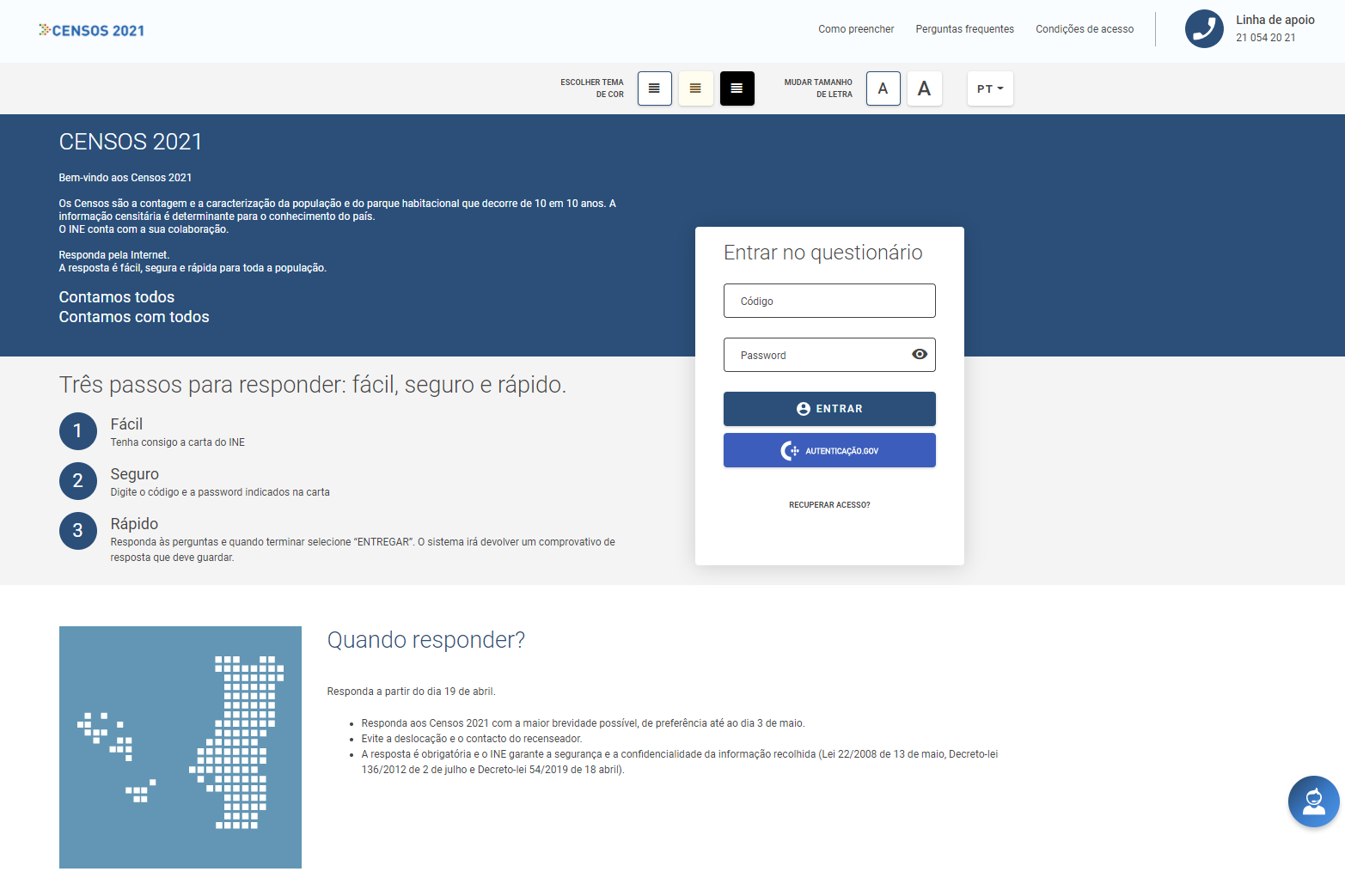 Os Censos 2021 constituíram a primeira edição totalmente digital em Portugal. Segundo o INE: 99,3% de taxa de cobertura e 83,3% de taxa de resposta global preliminar.